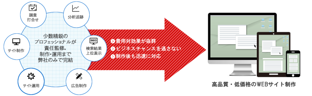 制作から運用・管理まで全ての工程をワンストップで行うことにより、ご満足いただける費用対効果を発揮します。